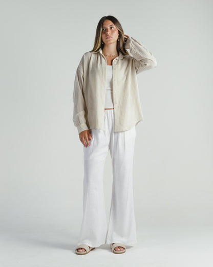 The Breeze Set combines the smooth comfort of pure linen with effortless elegance. Featuring The Pure Wrap Chemise, which comes in three colors, and The White Pants, this set offers a chic, easy style with a fresh, serene look, perfect for everyday wear.
