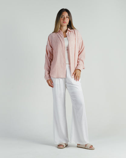 The Breeze Set combines the smooth comfort of pure linen with effortless elegance. Featuring The Pure Wrap Chemise, which comes in three colors, and The White Pants, this set offers a chic, easy style with a fresh, serene look, perfect for everyday wear.